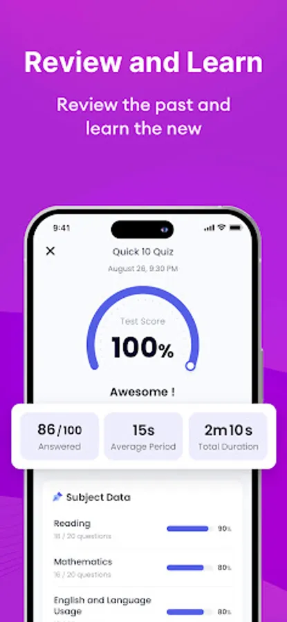 - All questions are categorized by exam subjects