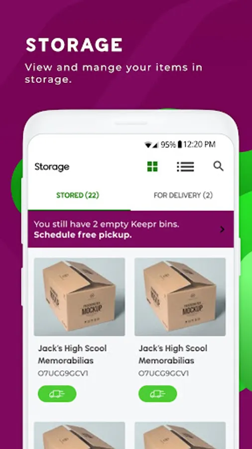 Keep track of what you have in storage within the app. We’ll manage your inventory by adding photos of your items and tagging them with unique barcodes. You can then add a description to each box so you know exactly where everything is at all times!