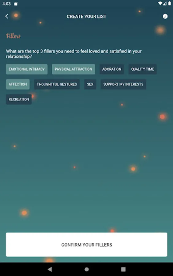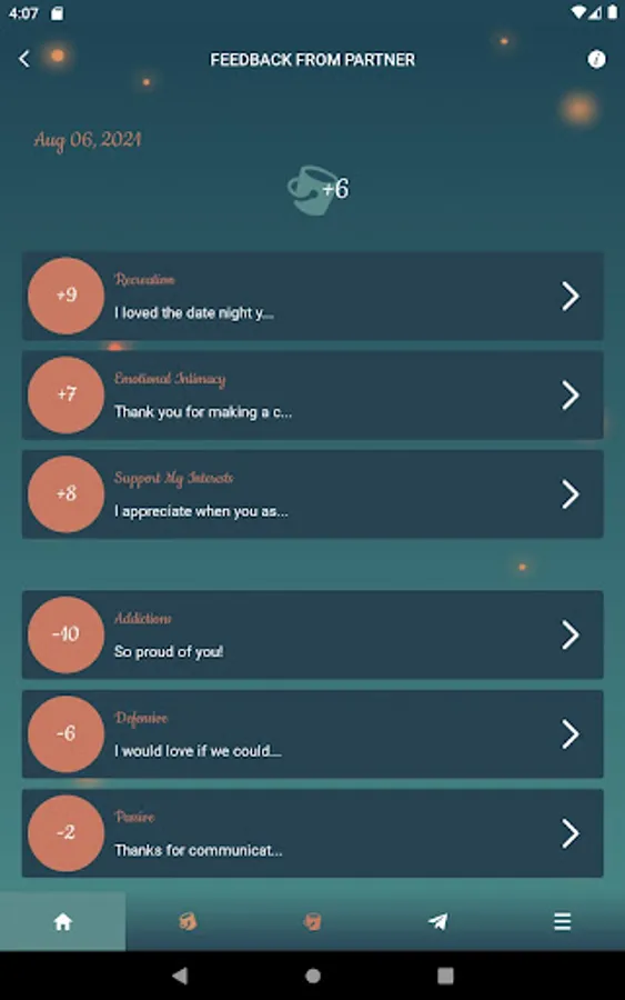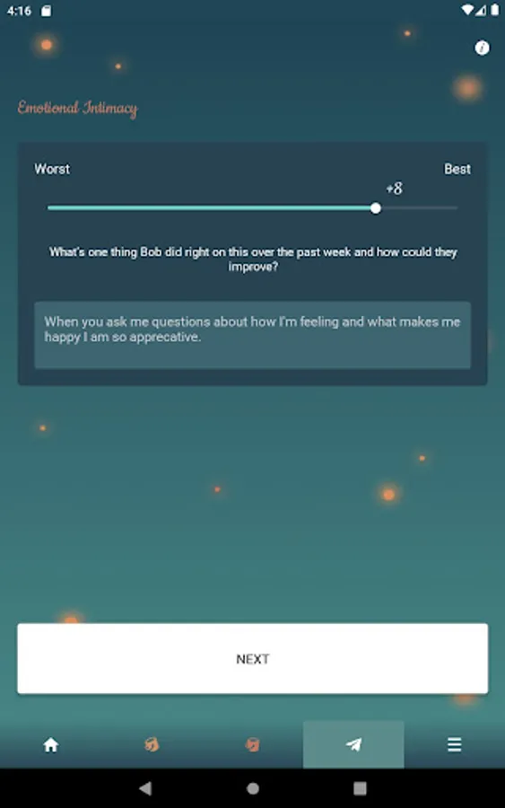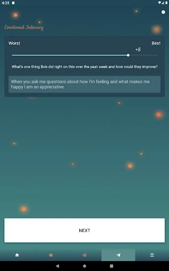 There are three phases you'll experience with this couples app to improve your communication. First, you'll learn what your partner's fillers are that they need to feel loved and what the drainers are that you do that makes them feel negative toward you. Second, you'll slowly learn how they are defining their fillers and drainers. For example, they may list affection as a filler but it may take time to learn what type of affection they desire most. Third, you'll slowly start changing your behavior to maximize their fillers and minimize the drainers. If couples are intentional, it usually takes 8-12 weeks to get their love buckets filled consistently. Changing behavior in relationships can be challenging. However, this couples app will help through regular communication on how well you both are doing filling up one another's love buckets. It also provides accountability through weekly feedback so neither partner backslides in their efforts.