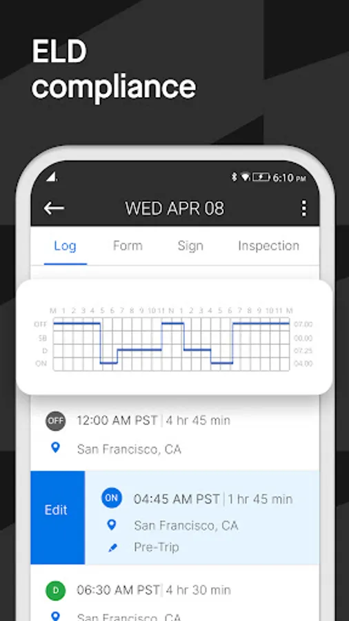 Can be switched to Inspection Mode to show ELD logs to an officer during a roadside inspection without compromising the driver’s privacy.