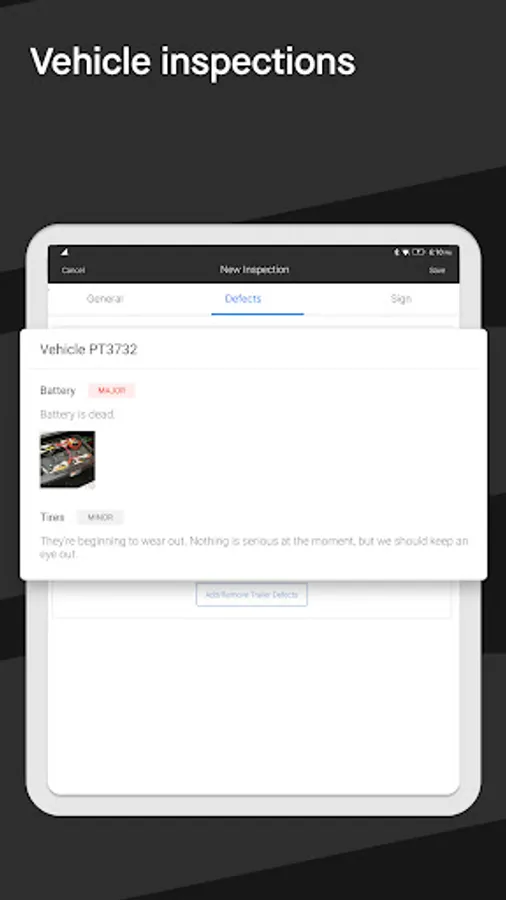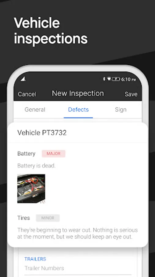 Complete pre-trip and post-trip driver vehicle inspection reports (DVIR) so you can report and keep track of any defects.