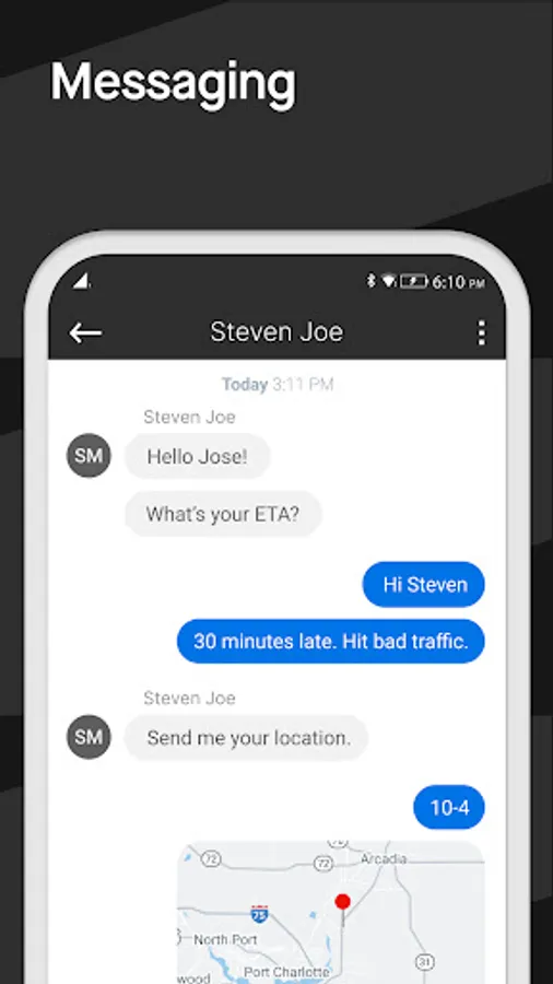 Message your fleet manager or dispatcher directly through the Motive Driver App.