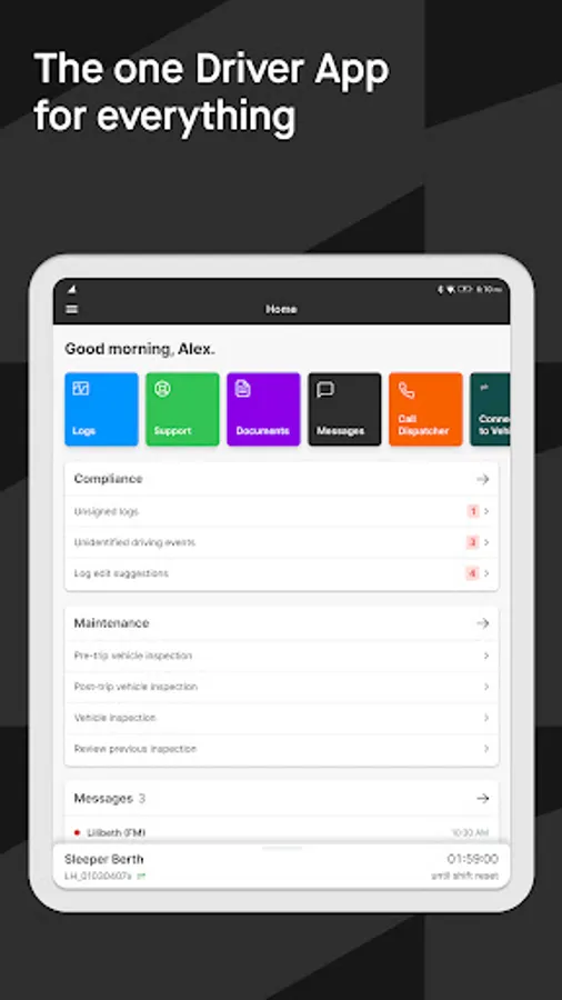 The Motive Driver App makes recording Hours of Service (HOS) on your Android phone or tablet fast and easy.