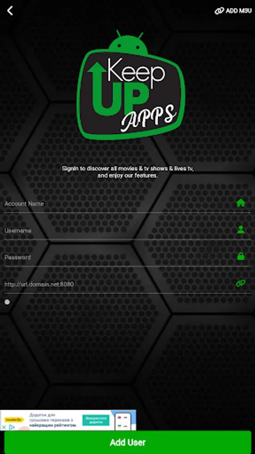 We do not promote or offer any Copyrighted material, IPTV Subscription, or Copyrighted Streams. Users have to add their own streaming URLs or any service from service providers for user-id, password, any credentials, URLs or m3u Playlists or any type of URLs that the user chooses to stream.