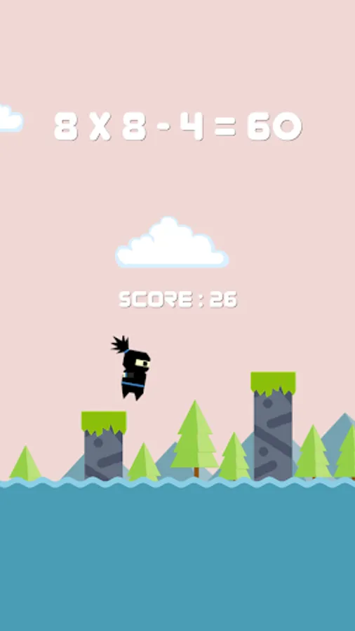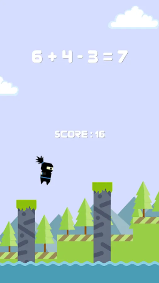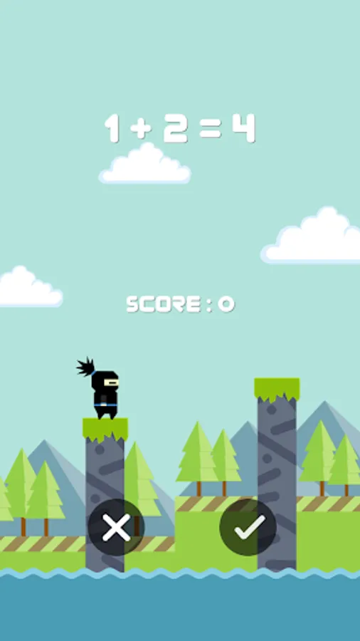 The rules of Brainy Ninja is very simple. You have to answer if each mathematic equation is correct or not. If you get it right, hooray! your ninja will jump to the next pole to face the next question. If not, the poor ninja will fall down into the river. Think wisely, but don't take your time too long, otherwise the rising water will catch your ninja!