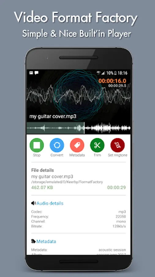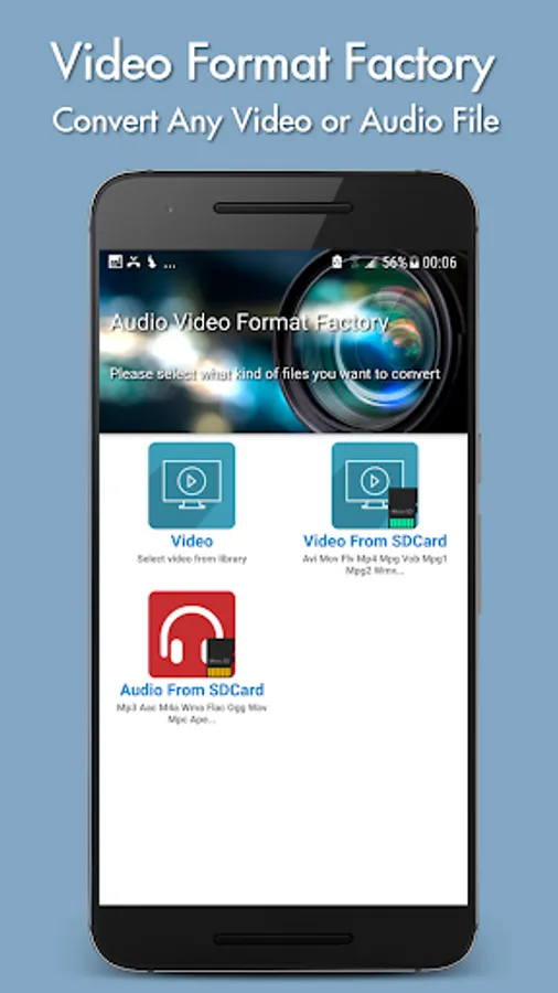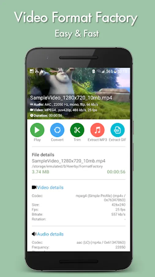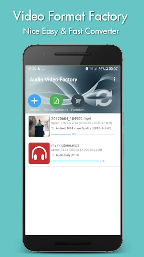 + Convert all your Mp4, Flv, WebM, Avi, Mkv, Mp3, Flac, Wma, Ogg, M4a, Wav... files. All major formats supported.