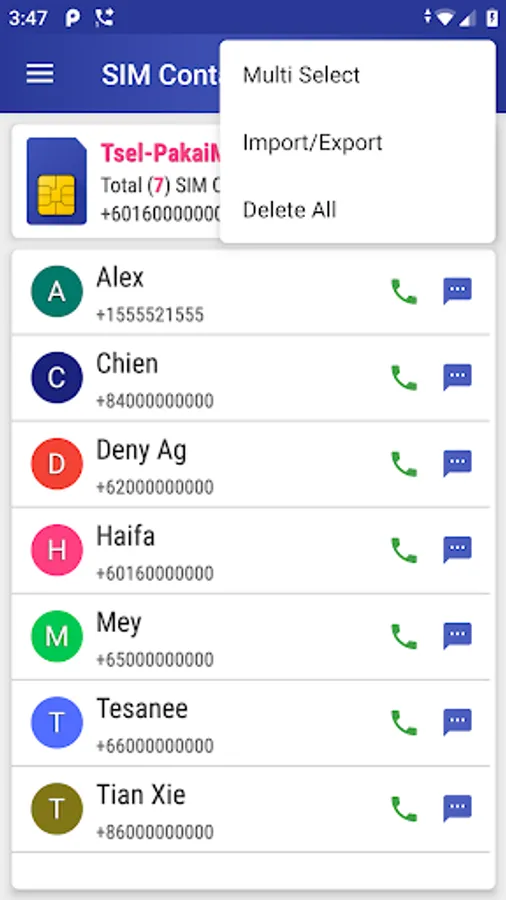 The SIM Phone Book can read all the phone numbers on the SIM card! you can also edit, delete, export/import your phone number.