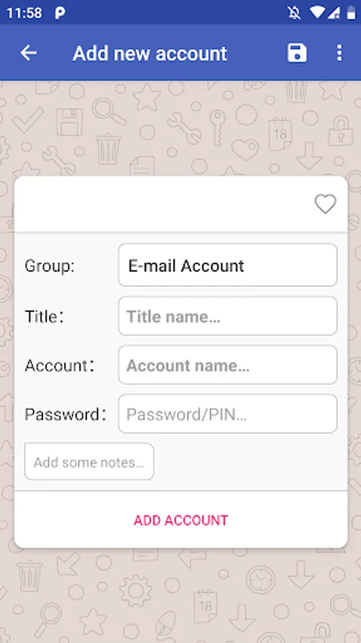 My password (Password Storage) Is a useful application for the storage needs of your account and password like Bank account, Credit Card, E-mail, Sosial media account etc.
