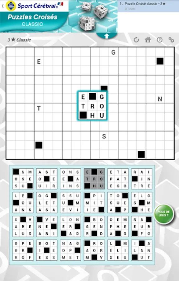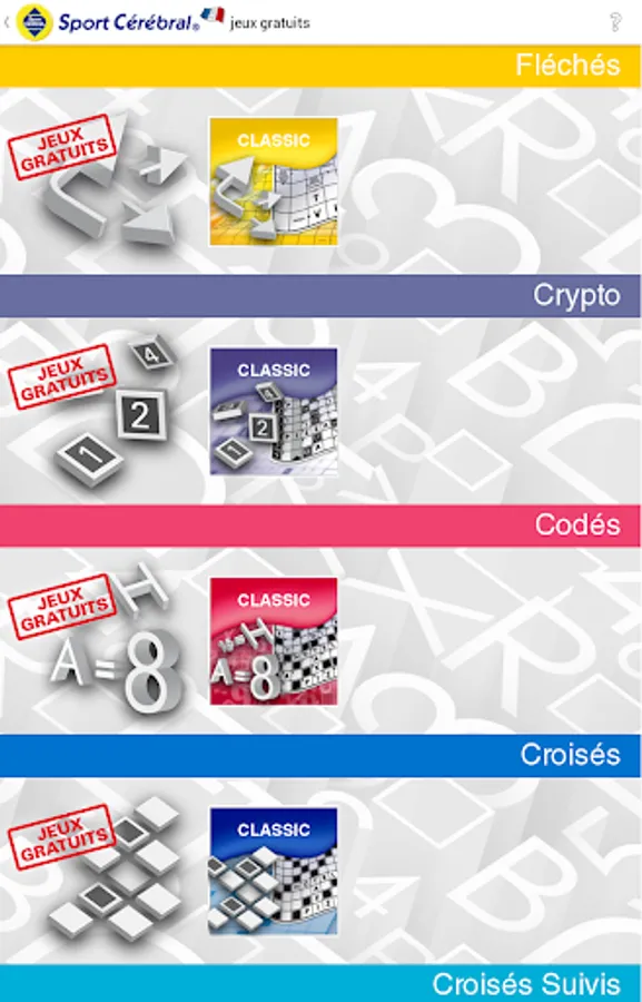 Enjoy games Sport Brain ® for Android tablet: crosswords, word search, sudoku, crosswords, crossword followed, codewords, Crypto, crossword puzzles and word boxes.