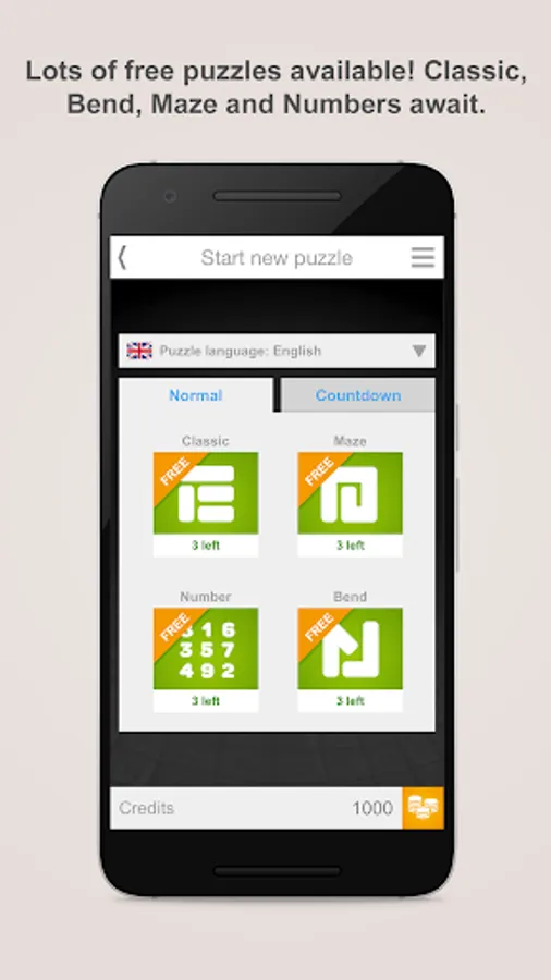 Thousands of puzzles await in 7 languages (Dutch, French, English, German, Spanish, Danish and Swedish).