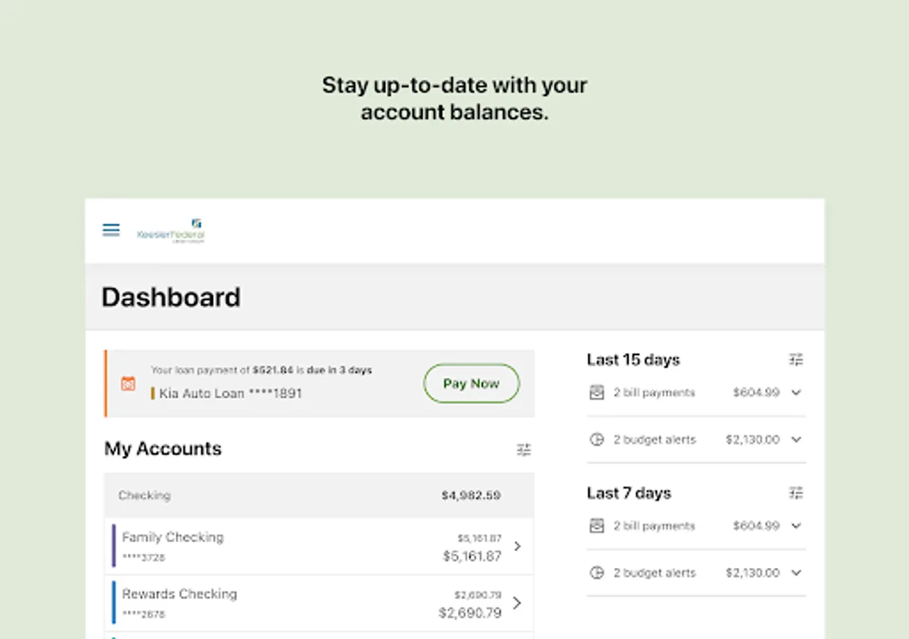 All Keesler Federal members may use our Mobile Application for no charge. Your wireless provider’s messaging and data rates may apply.