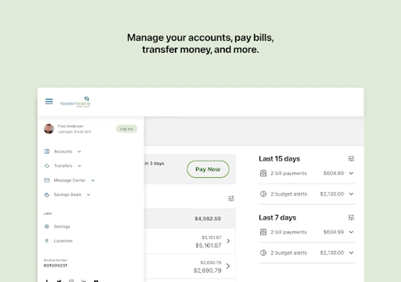 Manage your accounts, view copies of your cleared checks, and view transaction history. Busy members can also make quick transfers within Keesler Federal accounts and find the closest ATM in Keesler Federal’s network.