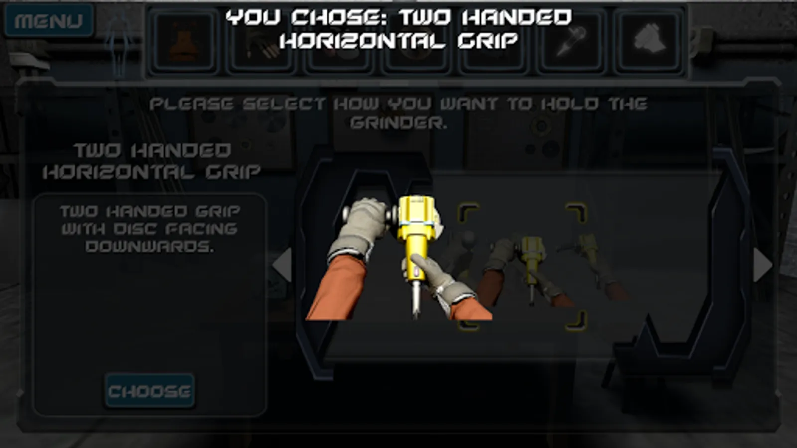 This app is a gamified version for operating Angle Grinder with complete safety equipments.