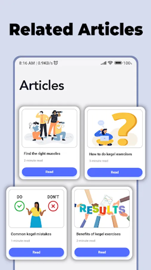 • In-App articles to learn about kegel