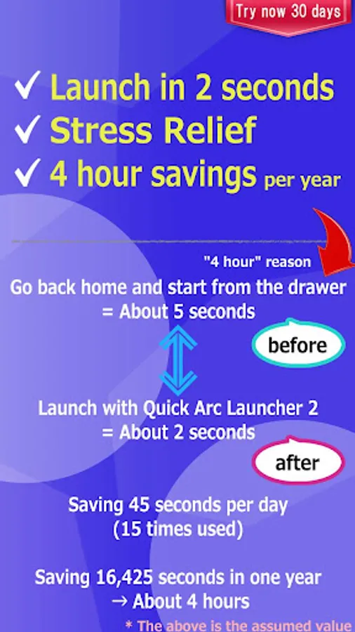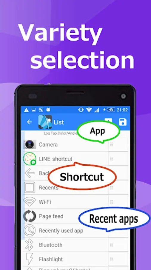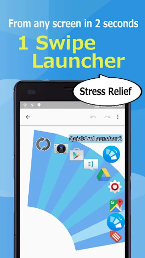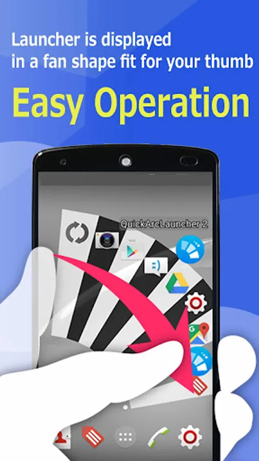 Furthermore, as a feature of this application, "display of application list" ~ "start-up" is complete with only 1 swipe ! Also, since the app list is a fan-shaped according to the movement of the thumb, the operation with the thumb is very easy.