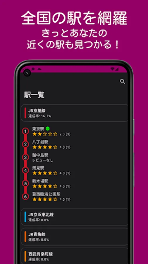 It is an application that can record the visit history and word of mouth of the station. It is compatible with almost all routes in Japan, so you can enjoy it wherever you live. Compatible with JR, private railways, third sector, monorails, new transportation, cable cars, and trams (including Shinkansen).