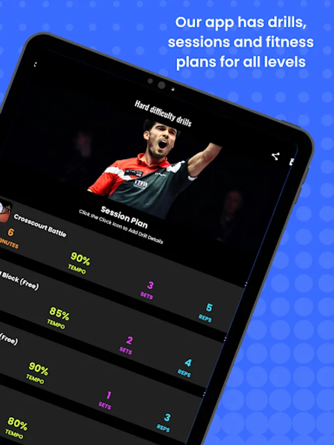 With this app we are sure it will add benefit to you as a player, coach or sparring partner. TTFit enables the coach/player to mix and match different exercises to allow for custom made sessions. With this feature you will be able to pre plan your training session and carry out a more organised training program.