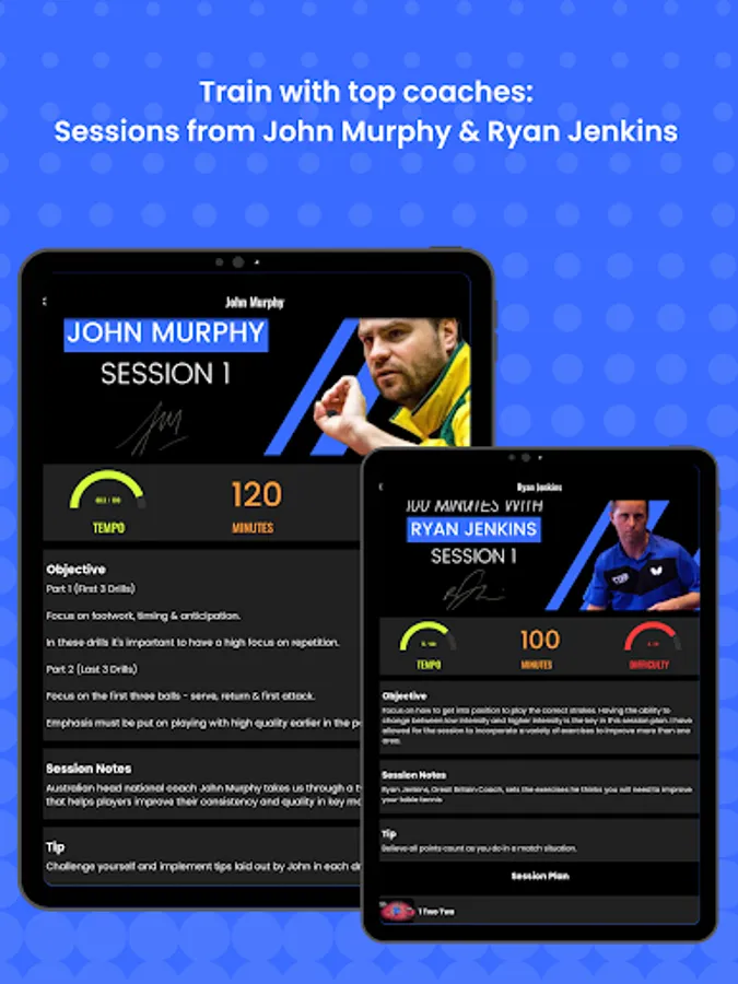 These state of the art video tutorials include Table Tennis exercises, tailor-made in-hall fitness exercises and workouts to better improve your game. Our leading coaches and development team have formed over 40 pre-made training sessions all with the end goal of improvement in mind. These sessions focus on the various aspects of your game, including but not limited to; Service, Receive, Third Ball, Flicking, Reactions, Control, Forehand, Backhand, Touch and Push.