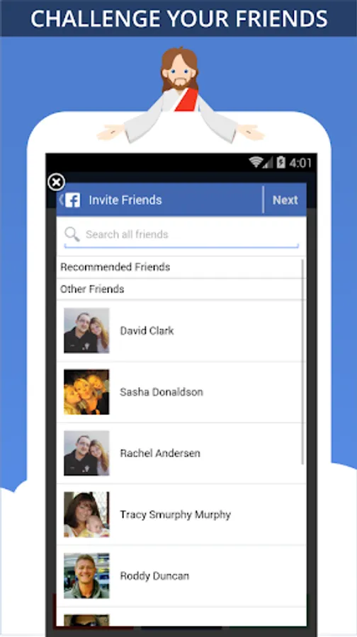 The only Bible Trivia game on the Play Store that features the Vs Friend mode. Simply find a friend with our Bible Quiz installed, or invite them to install. Select the amount of Bible Questions and then challenge your friend. You will complete the quiz then it's your friends turn. Once both Bible Trivia game players have completed the questions you will then be both notified who the winner was! A fantastic way of socializing with friends & family and learning about the Bible and Christianity together.