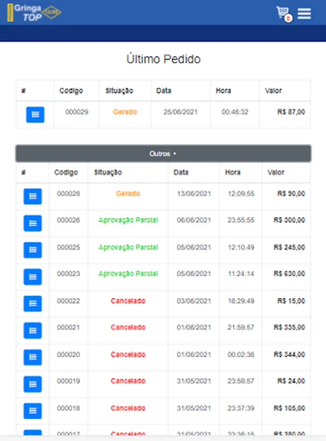 Exclusive application for order management between Gringa Top 10/99 stores