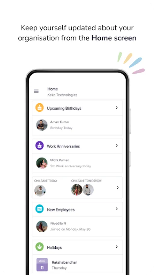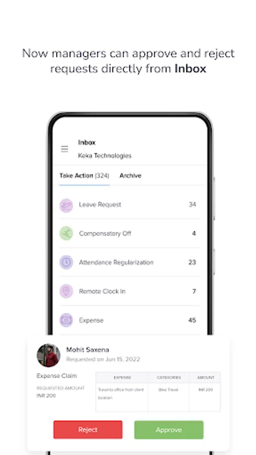 - Manage your team: Know who is on leave, who has their birthday or work anniversary today, view and approve requests like leave and attendance from unified Inbox interface