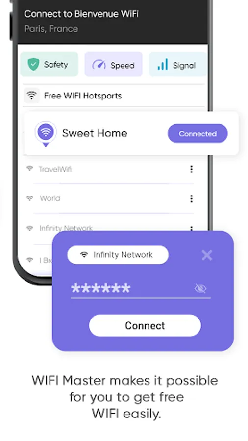 * Users can choose the wifi near them wherever they’re with our Wi-Fi finder App