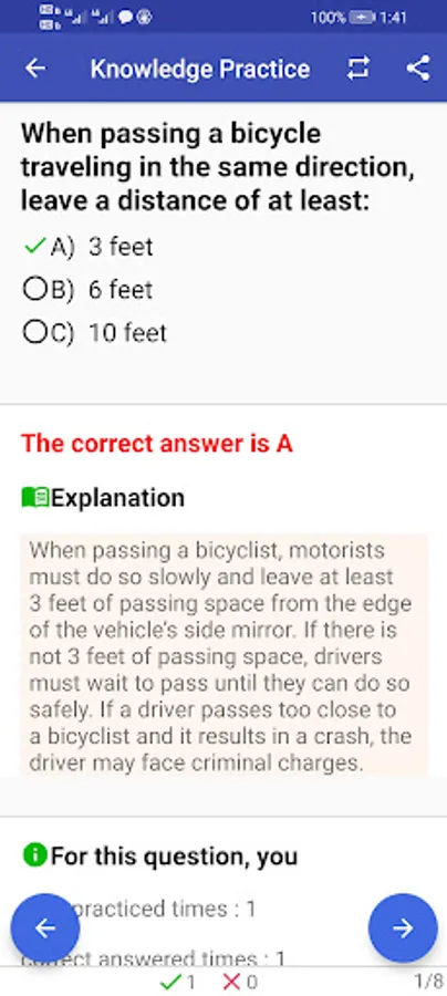 Each question has detail explanation picked from Illinois driver manual. Make you better understand the knowledge and skills.