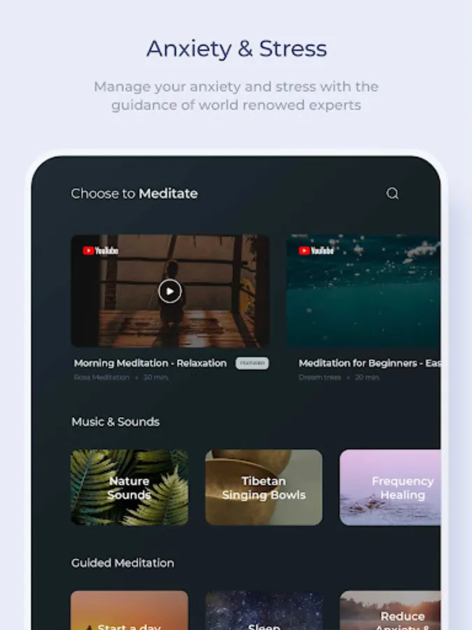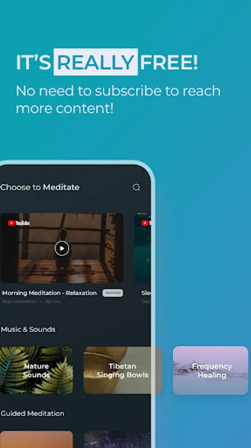 Enjoy more than 7000 free guided meditations, music and sounds for meditation. But it’s really free. You don’t have to subscribe to reach this content. Here are the categories of meditations: