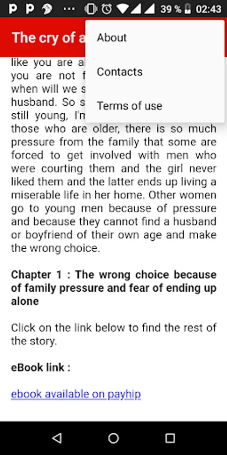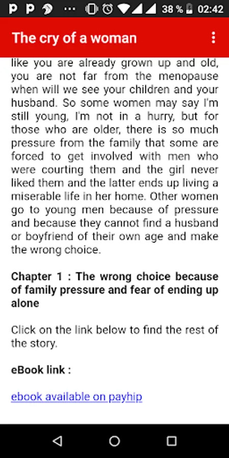 This eBook is the story of a beautiful and wealthy woman who began to feel family pressure about the fact that she still didn't have a husband. She eventually broke down under family pressure and threw herself at the first man she could find who would make her suffer to such an extent that she ended up being depressed.