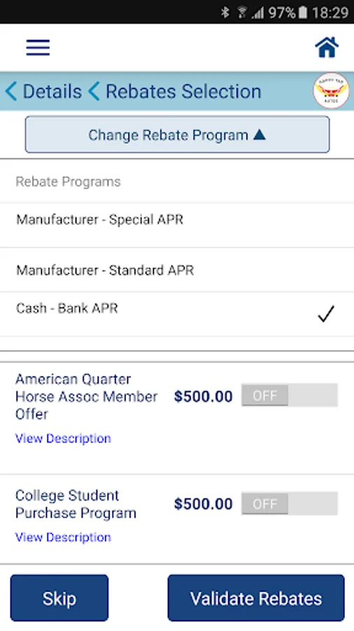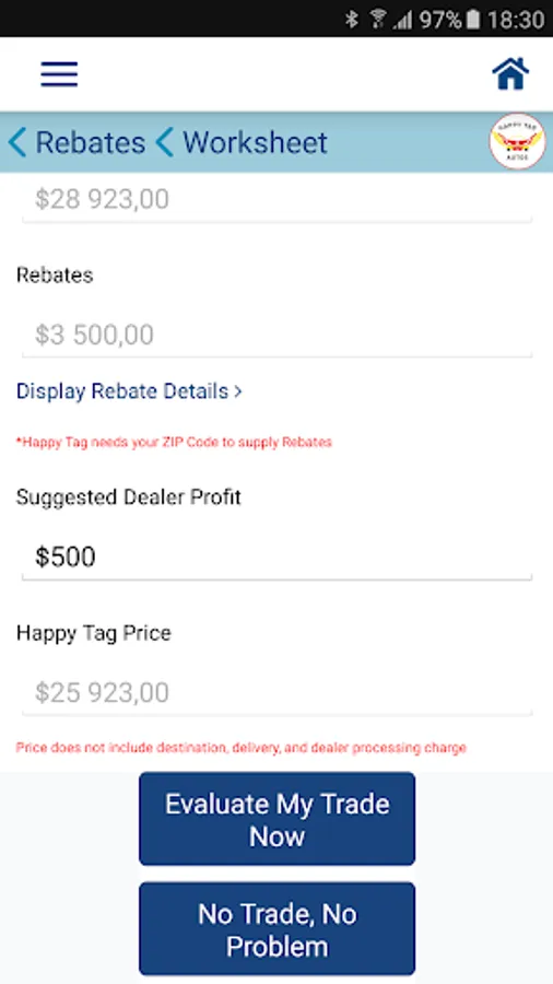 Happy Tag Autos is a consumer application that allows you to select a vehicle and negotiate directly with the auto dealer without having to deal with a salesperson. Happy Tag Autos is your real-time solution to be your own salesman and deal directly with the auto dealer. All you have to do is: