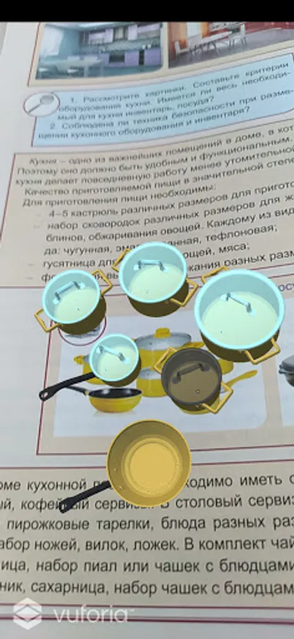 The mobile application "Artistic work Grade 5 (for girls)" is based on the use of augmented reality (AR) technology, which recreates a three-dimensional model of the object in front of the student.