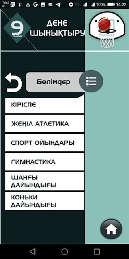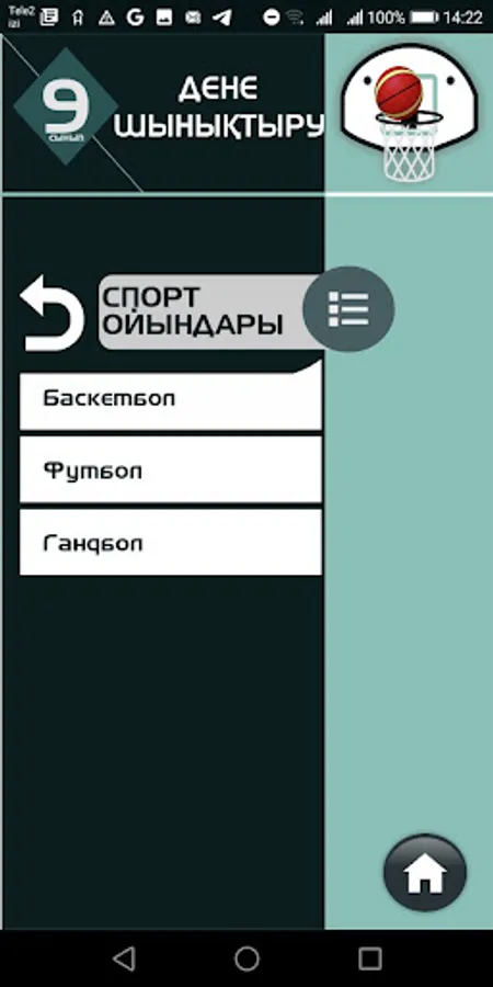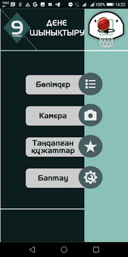 "Dene shynyqtyru 9" is a mobile application for the textbook "Physical culture. Grade 9". With the application, you can view additional images on the topic. To do this, you need to launch the application and point the camera at the text or illustration with the mobile application icon in the tutorial. When capturing a picture, place the illustration in the center of the active area.