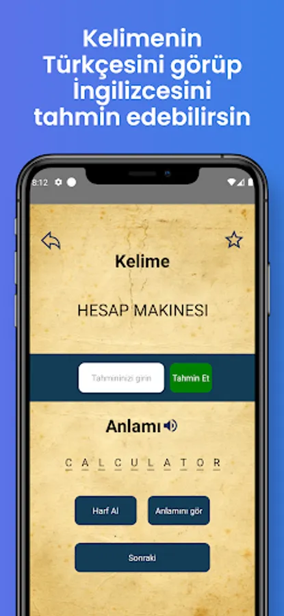 In the process of learning English vocabulary, our application offers you specially prepared word lists. In addition, you can constantly test your English vocabulary with the vocabulary test and study features. Our app also allows you to track your English vocabulary learning progress and see your saved vocabulary. Enjoy your English learning journey!