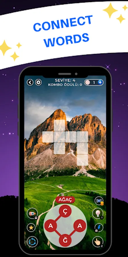 Play the daily changing word puzzle game behind wonderful landscapes. Earn hints as you find words. Words that become more enjoyable as you level up are waiting for you.