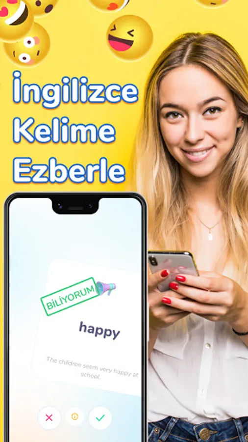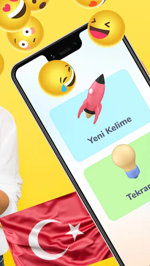 - You can touch the card to see the Turkish translation of the English word and the English example sentence.