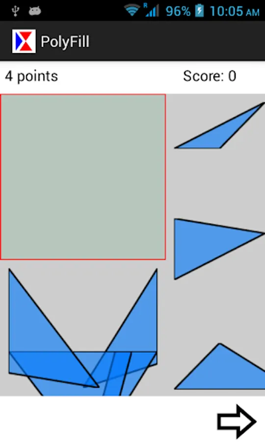Exercise your brain by racing against the clock to build different geometric shapes from assorted puzzle pieces. Points are awarded based on degree of difficulty and time taken to complete the puzzle. Optionally logging into GameCircle allows you to publish your score to a leaderboard and earn achievement awards.