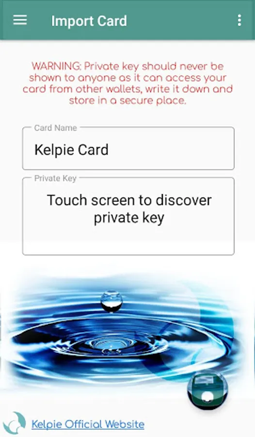 Kelpie Wallet facilitates the purchase and sale of Kelpie (KPE) cryptocurrency. This app allows users to purchase kelpie's using ethereum via cards in the wallet. Simply deposit ether to the address on the card, that card can then be used to buy and sell kelpie's, users can transfer coins to other cards with a simple drag and drop.