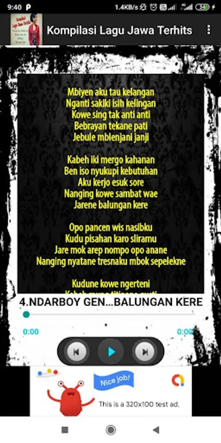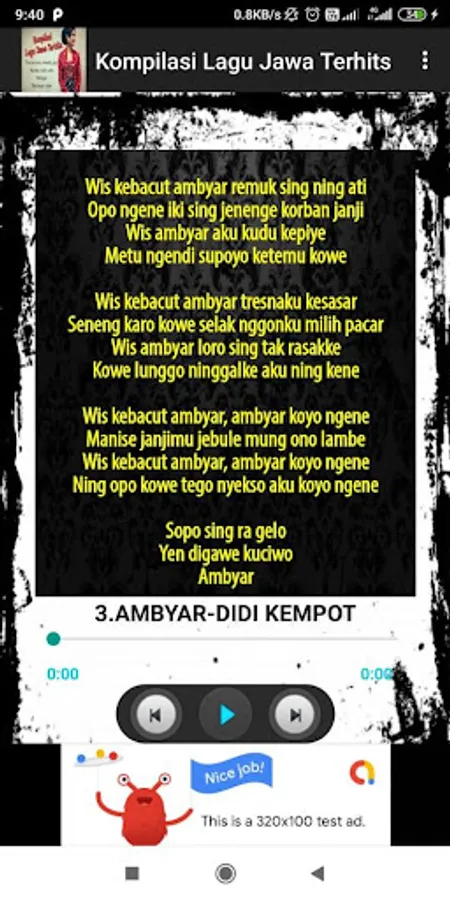 This application is a collection of songs in Javanese language hits, with the advantage of being offline and equipped with lyrics