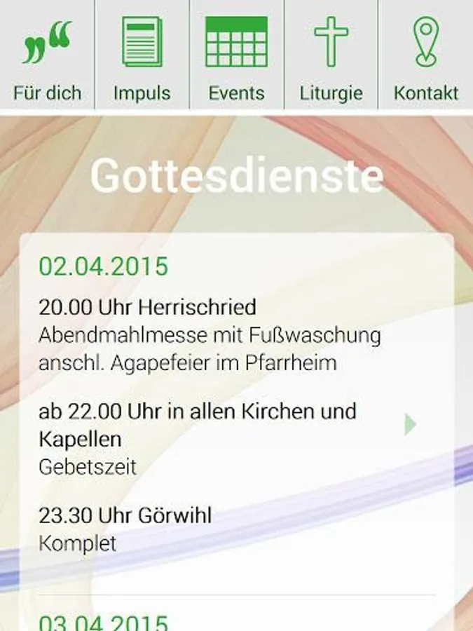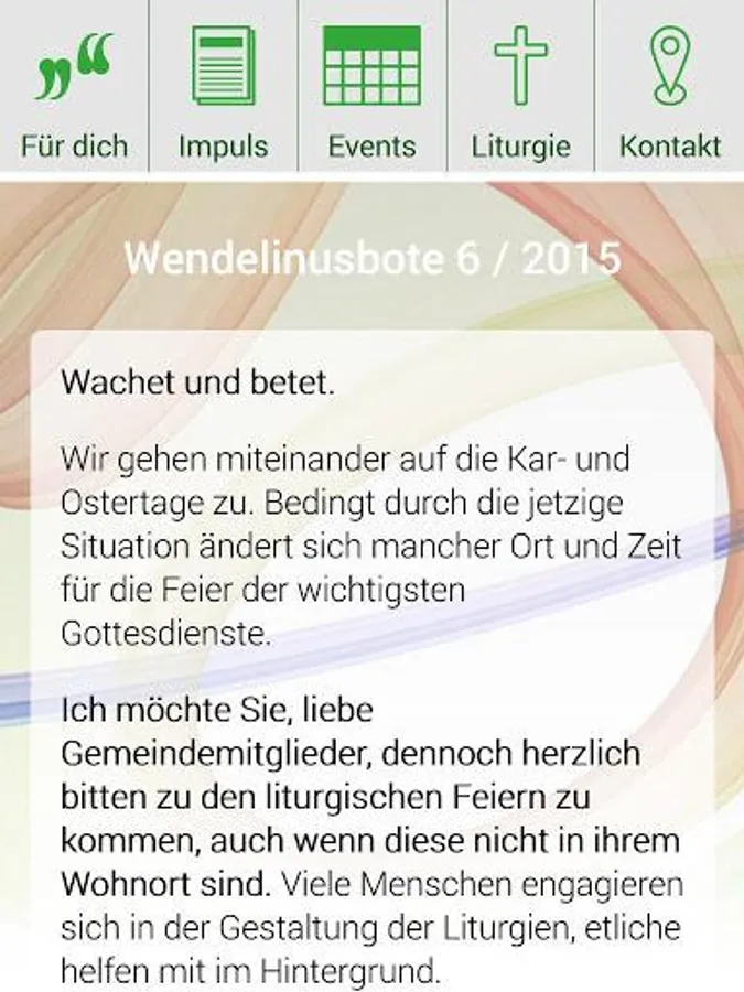 The event and liturgical calendar bring all appointments directly to your smartphone, so you always keep track of upcoming appointments.