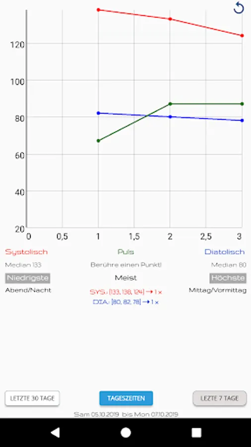 Time register and a useful graphical representation of your measurements, including diastolic, systolic and pulse readings