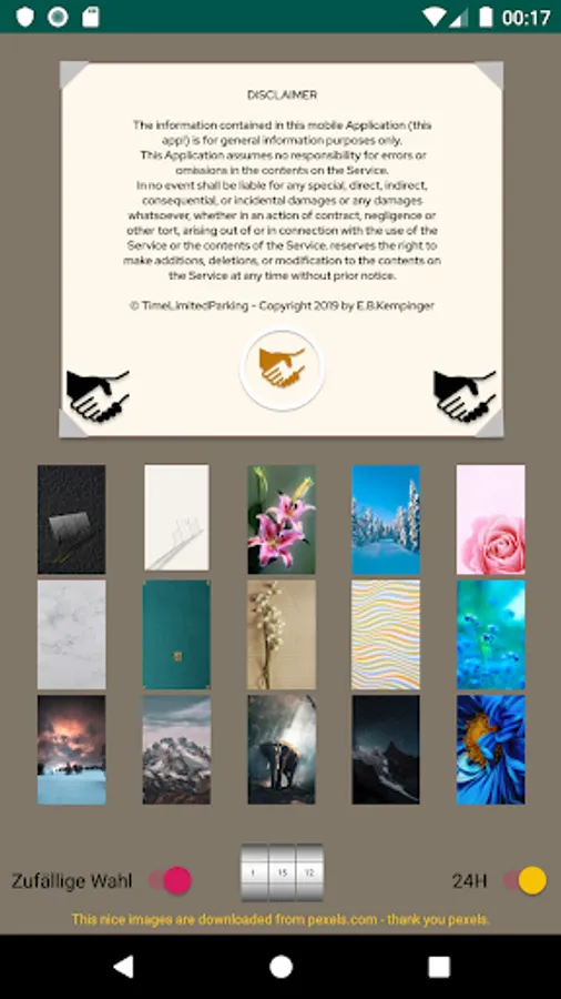 You can set the early warning to 0,4,8 or 12 minutes before your parking times expire