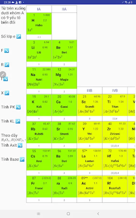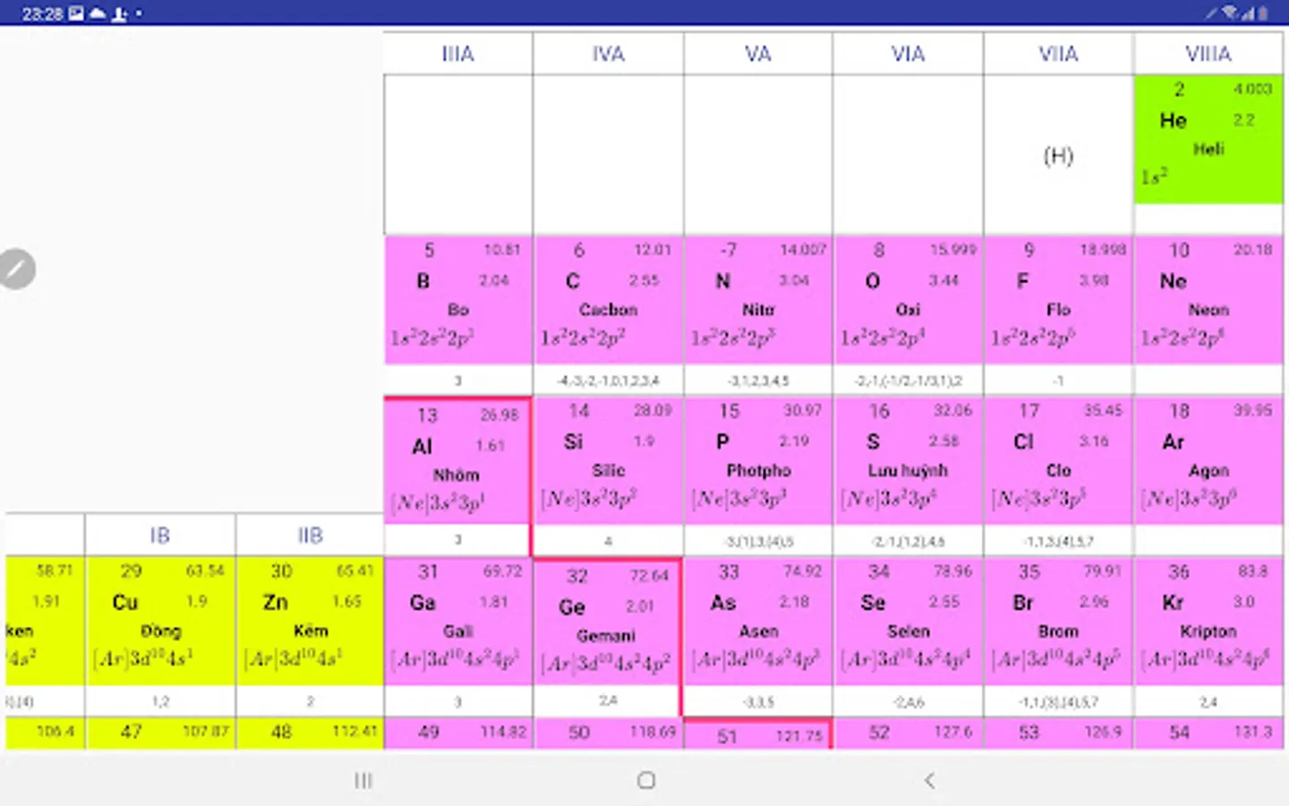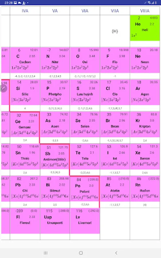 Bảng tuần hoàn các nguyên tố hóa học chi tiết được mô phỏng chi tiết, với các màu sắc và đầy các thông tin.