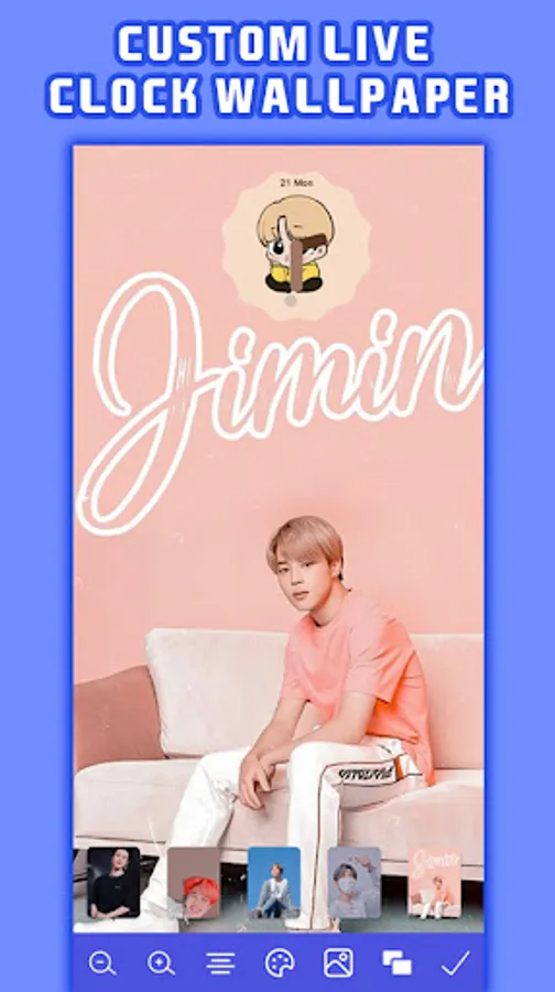 BTS Jimin Clock Live Wallpaper is a very cool Wallpaper app. There is a Clock Live Wallpaper BTS jimin with very funny characters. BTS Jimin Clock Live Wallpaper is a modern wallpaper application that you can use to design your phone to make it more beautiful. There is an edit feature Clock Live Wallpaper that you can customize to your liking. Design as good as possible, so that your JIMIN BTS Wallpaper looks even cooler.