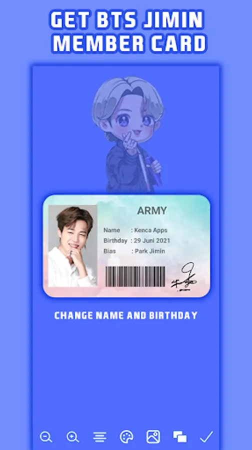 You will also get a Member Card directly from BTS Jimin. You will be an official member of ARMY BTS Jimin. If you are a fan of BTS Jimin, download it and get BTS Member Card Jimin !!