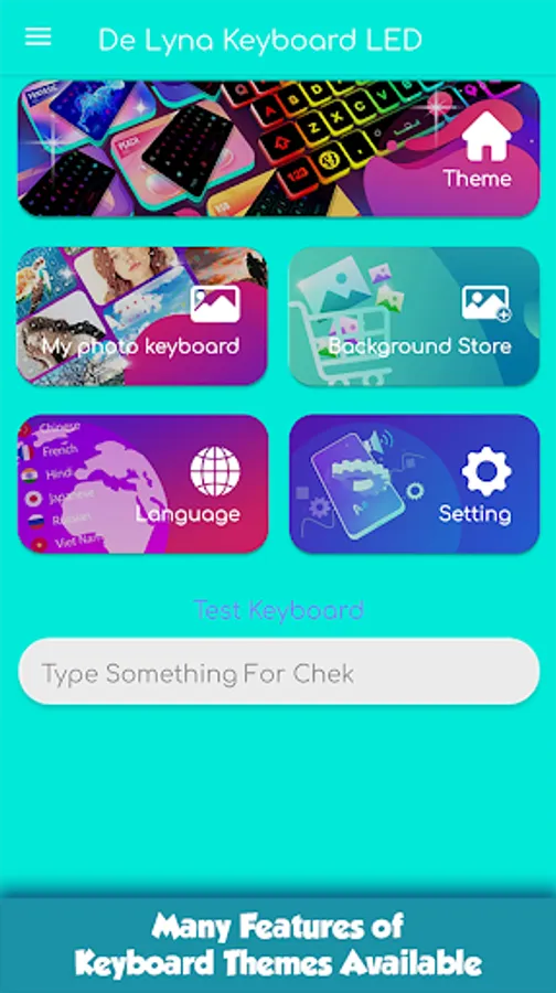De Lyna Keyboard LED is a new keyboard for Android with which you can decorate with photos of De Lyna. You can type messages with a new and not boring keyboard model. De Lyna there are many choices of designs and photos that you can use to decorate your keyboard. With this keyboard you can type fast and get the experience of typing messages with a modern keyboard model.
