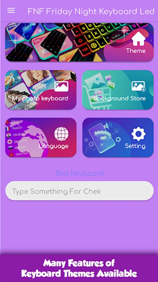 FNF Friday Night Keyboard LED - Keyboard Theme is a new keyboard for Android with which you can decorate with photos of FNF Friday Night. You can type messages with a new and not boring keyboard model. FNF Friday Night there are many choices of designs and photos that you can use to decorate your keyboard. With this keyboard you can type fast and get the experience of typing messages with a modern keyboard model.