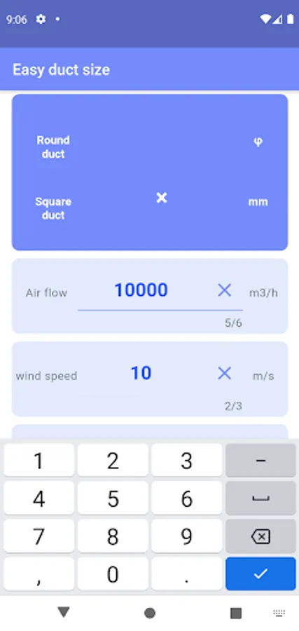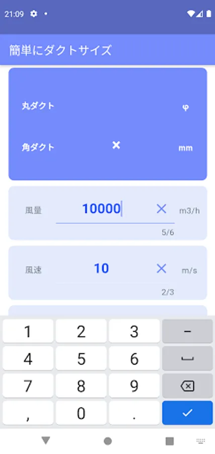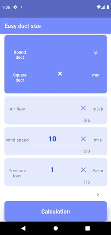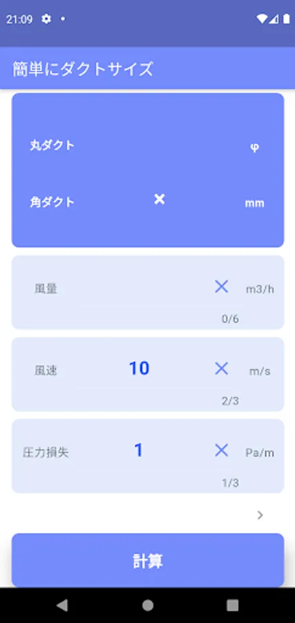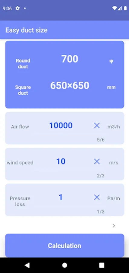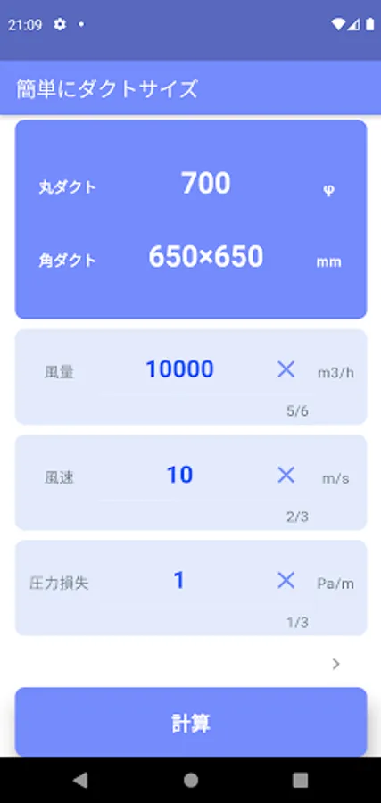 You can easily calculate the duct size just by inputting the air volume.