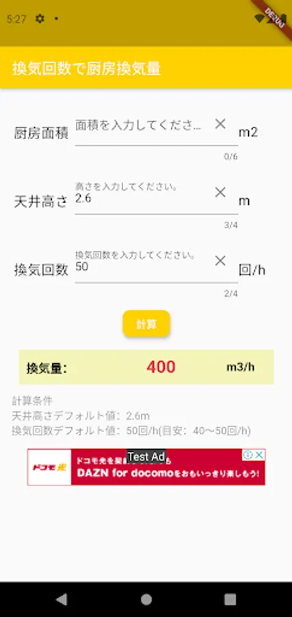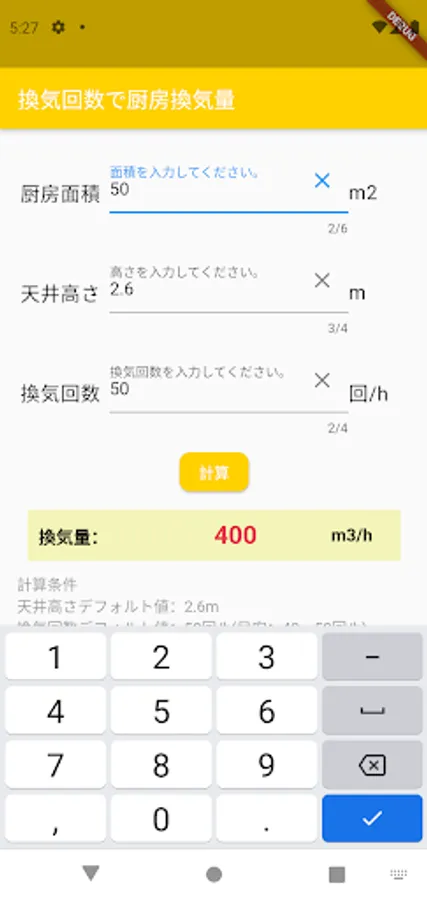 You can easily calculate the kitchen ventilation volume just by entering the area.