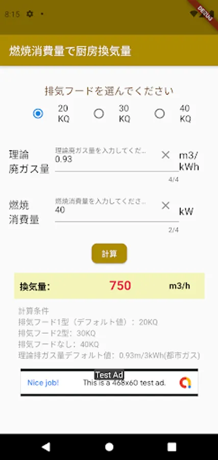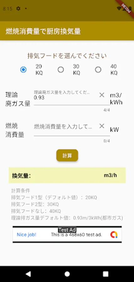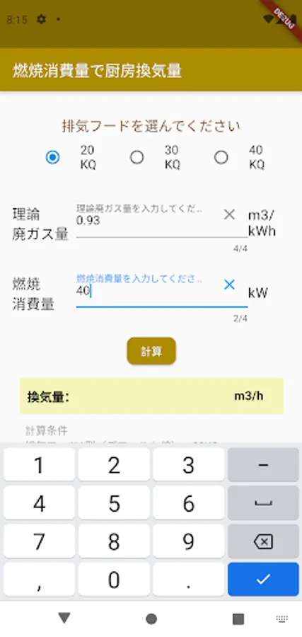 You can easily calculate the kitchen ventilation volume just by entering the combustion amount.