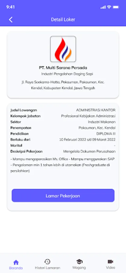 3. Fitur “Lamar” sehingga tinggal klik dan secara otomatis lamaran kerja akan dikirim ke perusahaan penyedia kerja.